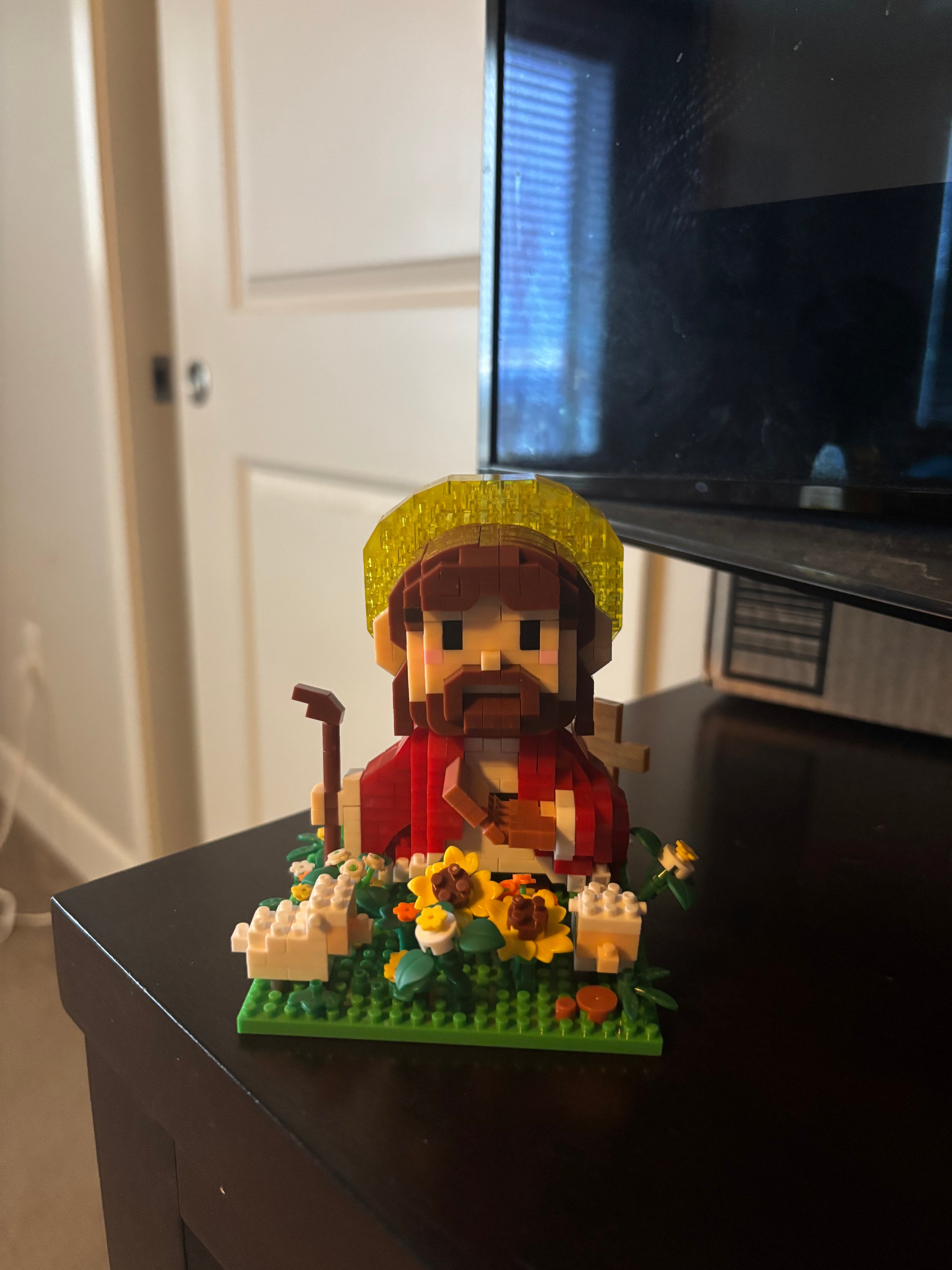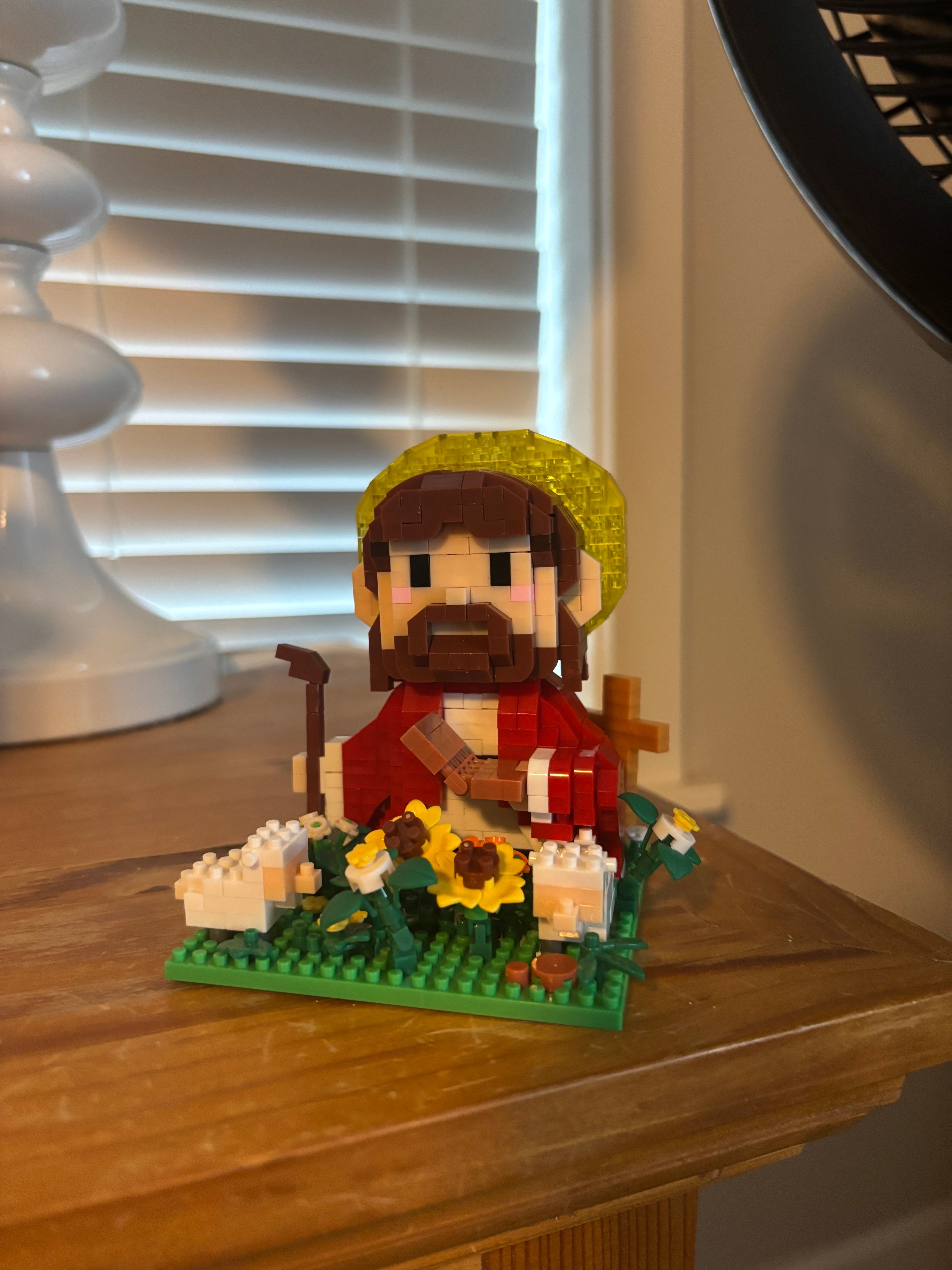 Bring creativity and inspiration together with the Jesus, Sheep, and Flower Building Set. This charming set lets builders of all ages construct a serene figure of Jesus surrounded by vibrant, blooming flowers and gentle sheep, creating a peaceful, pastoral scene. The set features a glowing halo above Jesus, adding a warm, radiant touch that makes your creation truly shine.
